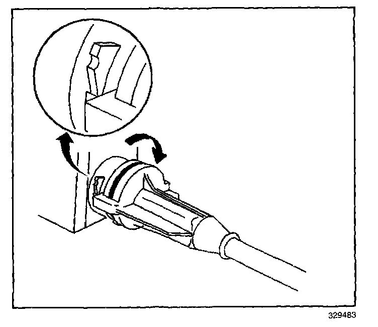 5. Disconnect the cruise control cable from the cruise control module by turning the cable � turn counterclockwise.