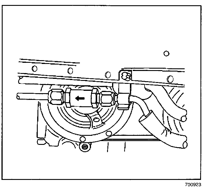 1. Install the liquid line into the A/C refrigerant filter. Hand tighten the nuts.