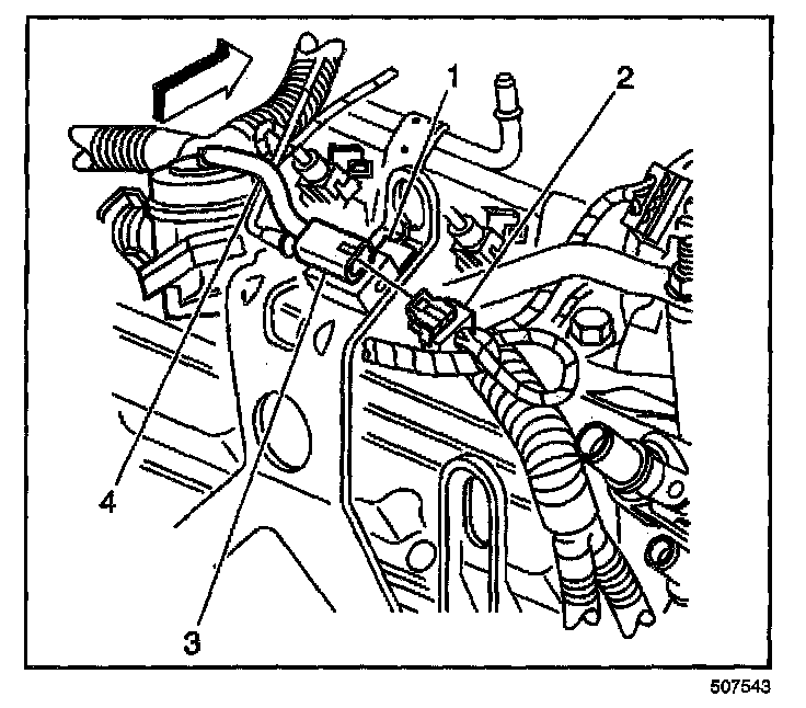 1. Disconnect the vacuum lines (4) from the solenoid (3).
