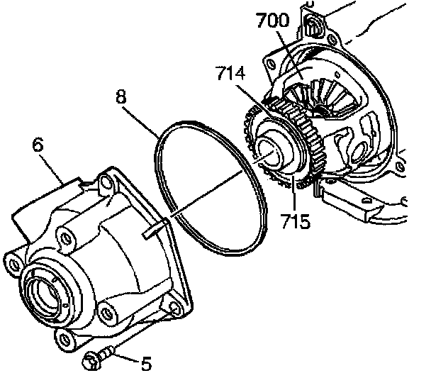 7. Remove the case extension housing (6) with axle seal and the O-ring (8).