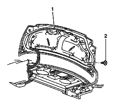 1. Position the rear compartment lid inner panel trim (1) to the underside of the rear compartment lid.