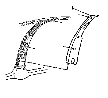 3. Pull the center pillar upper trim panel (1) outward at the roof in order to disengage the clips.