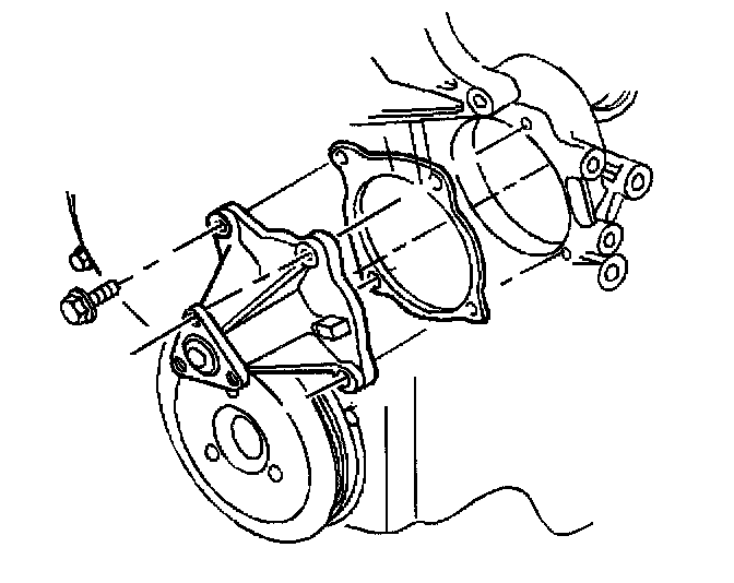 1. Using a new gasket, install the coolant pump and the attaching bolts. Coat the bolt threads with pipe sealant GM P/N 12346004 (Canadian P/N 10953480), or equivalent.