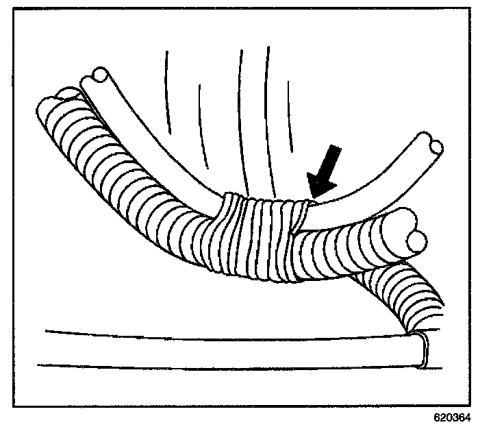 6. Cut the tape holding the 2 cables together at the retainer on the battery tray.