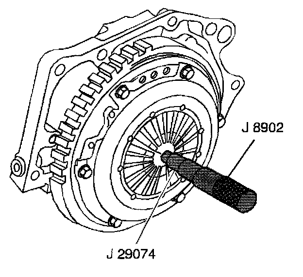 2. Install the J 29074 in order to support the clutch cover to the flywheel assembly.