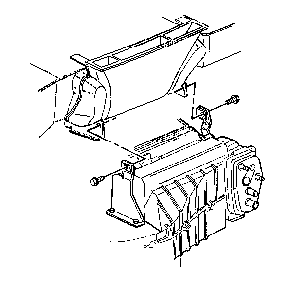 16. Remove the retaining bolts from the upper support brackets of the HVAC module.