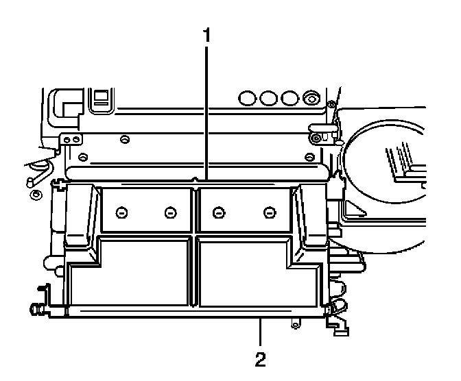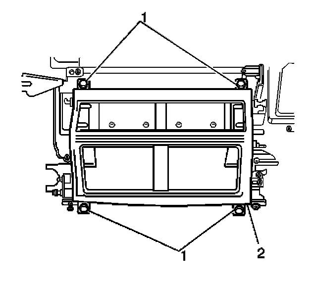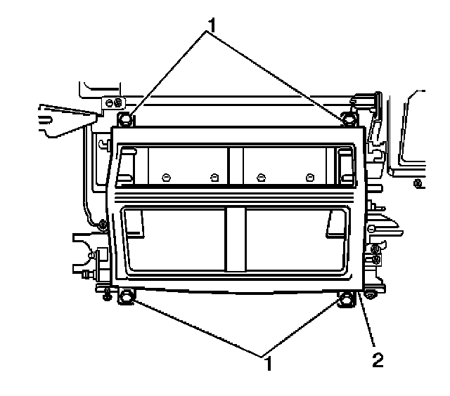 25. Remove the retaining screws (1) from the air distribution case cover.
