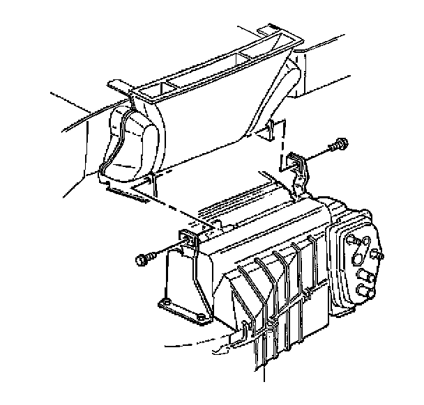 18. Remove the retaining bolts from the center support bracket of the HVAC module.