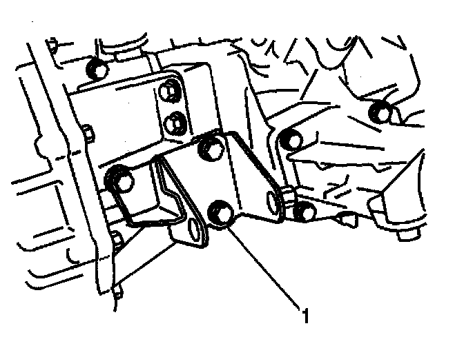 7. Install the left rear engine mount bracket (1) to the engine block.