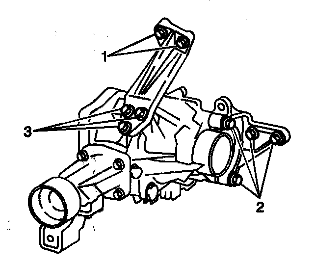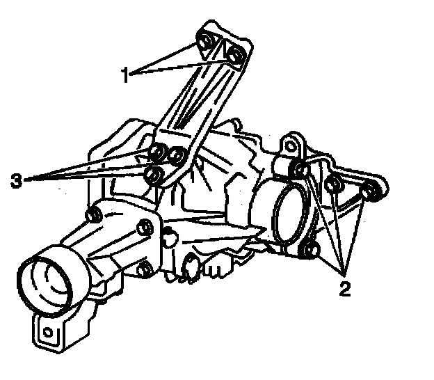 4. Install the 3 lower bracket bolts (3).