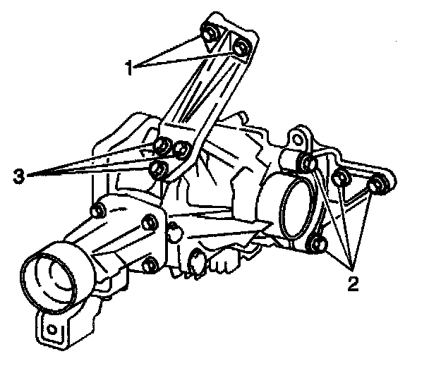 7. Remove the lower 3 bolts (3) from the transfer case bracket.