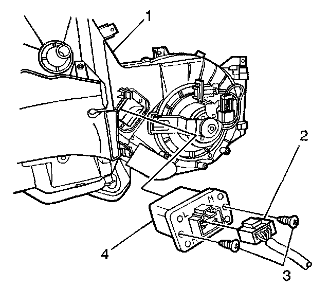 1. Install the blower motor resistor (4) to the HVAC unit (1).
