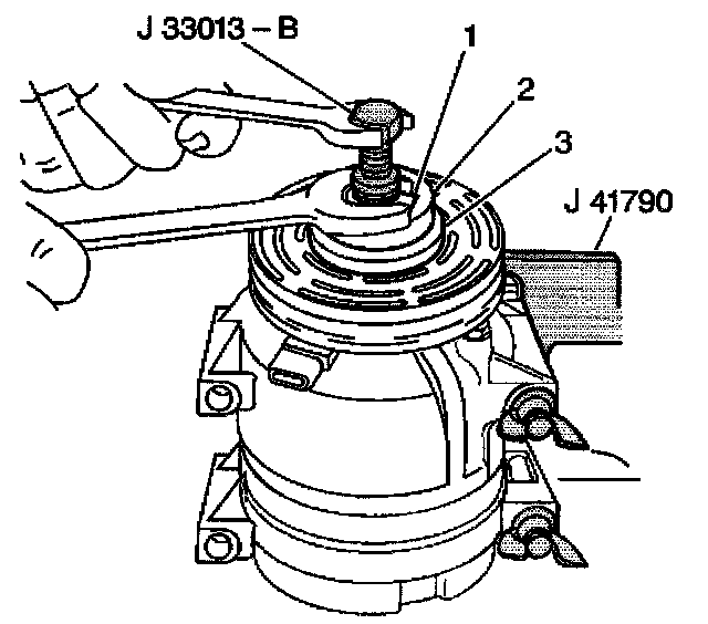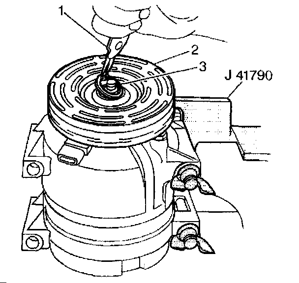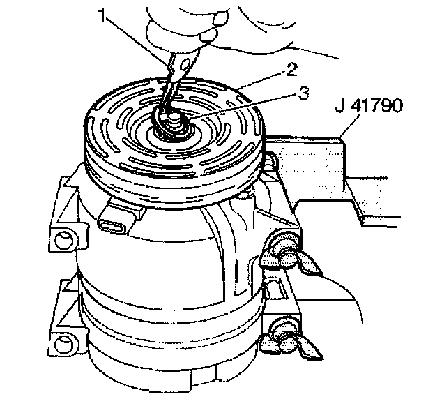 14. Remove the A/C compressor from the J 41790.