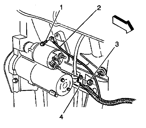 6.1. Remove the positive cable nut (3) at the starter solenoid.
