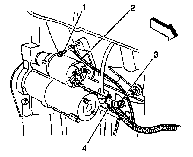 2. Install the positive cable nut (3) at the starter solenoid.