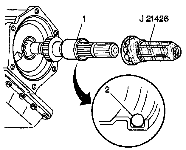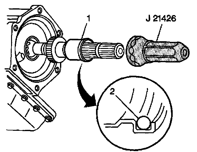 2. Install the output shaft sleeve (1) using J21426, if necessary.