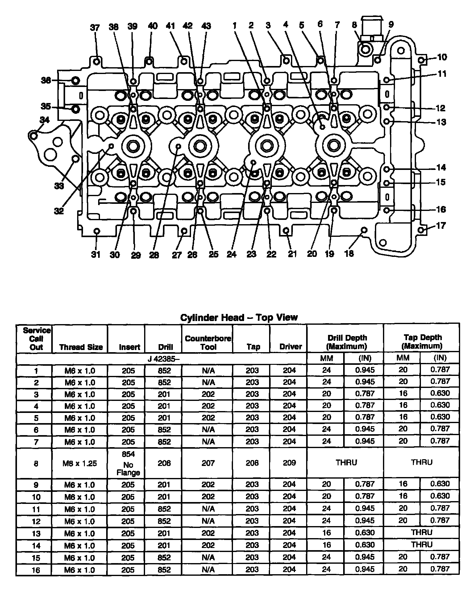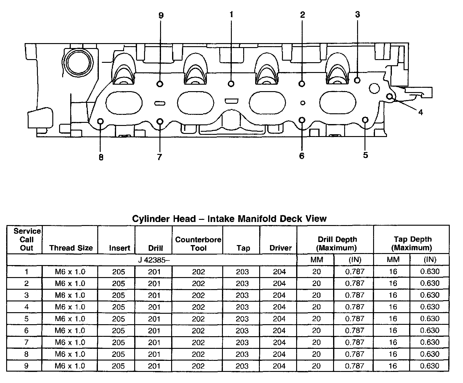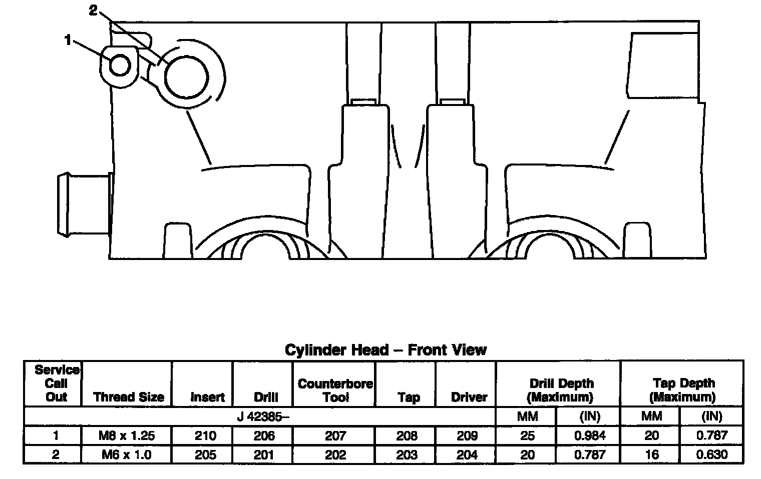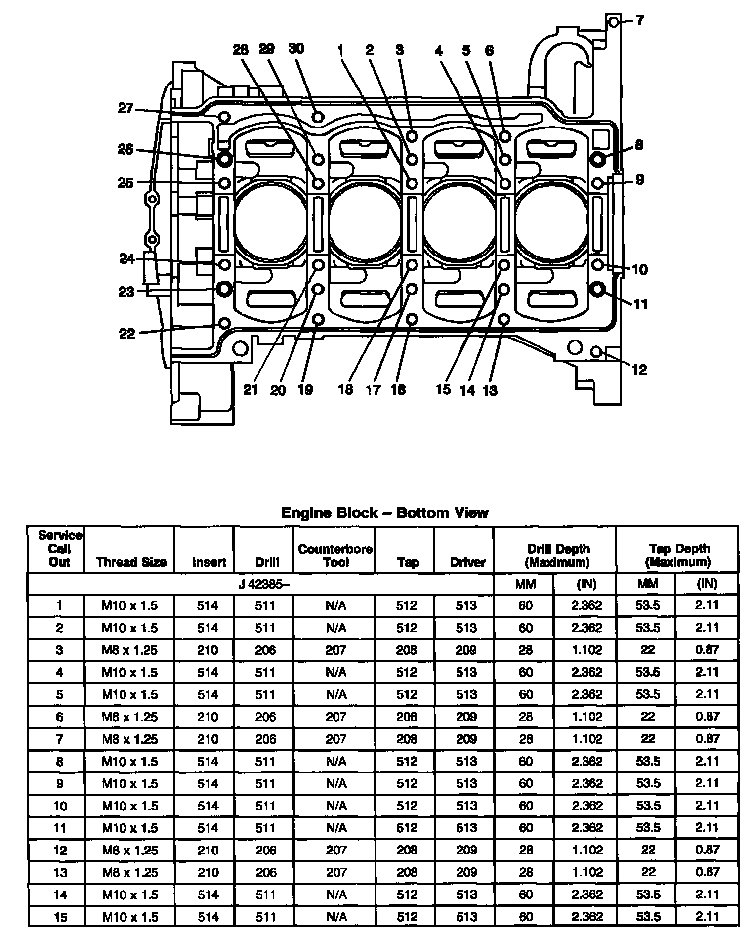 Thread Repair SpecificationsEngine Block - Front View
