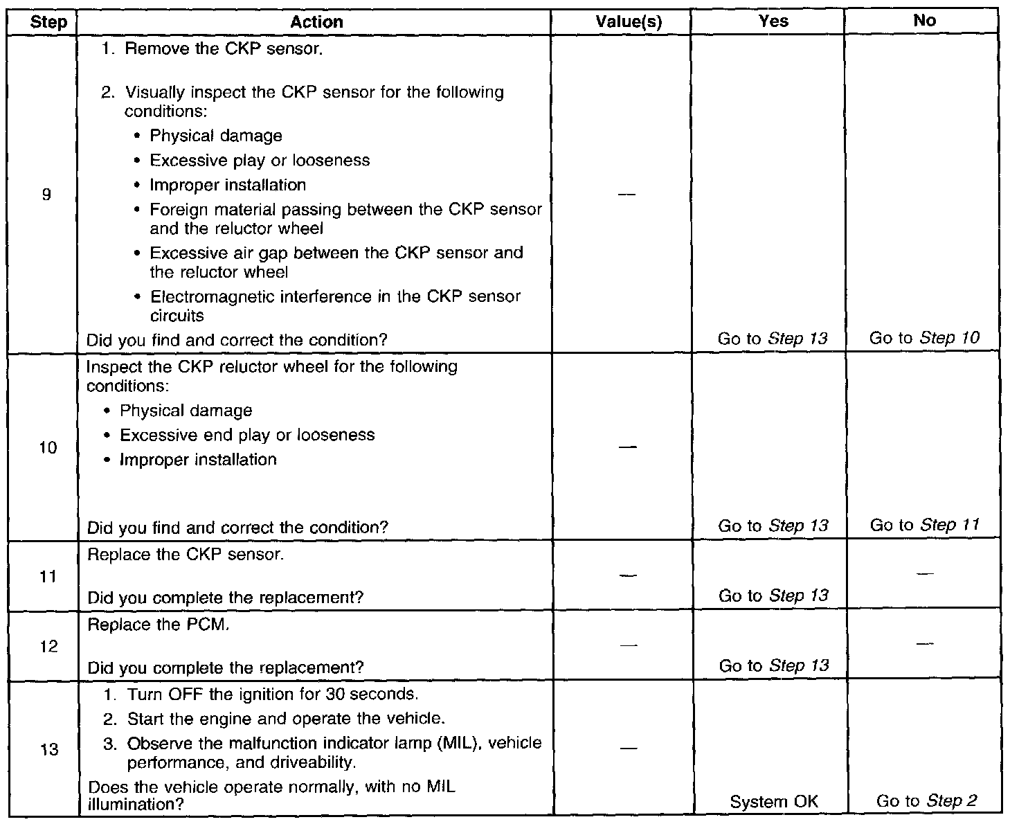 - The CKP sensor signal