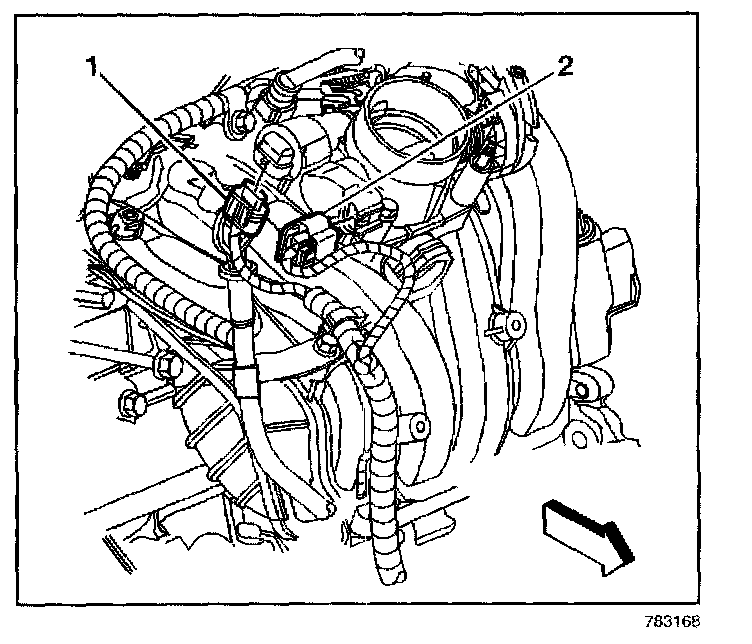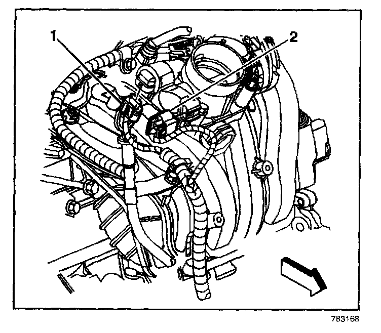 2. Disconnect the idle air control (IAC) valve harness connector (1).