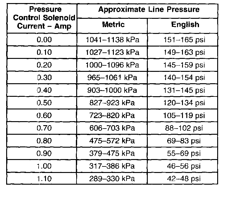 Line Pressure Chart