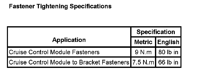 Cruise Control: Specifications