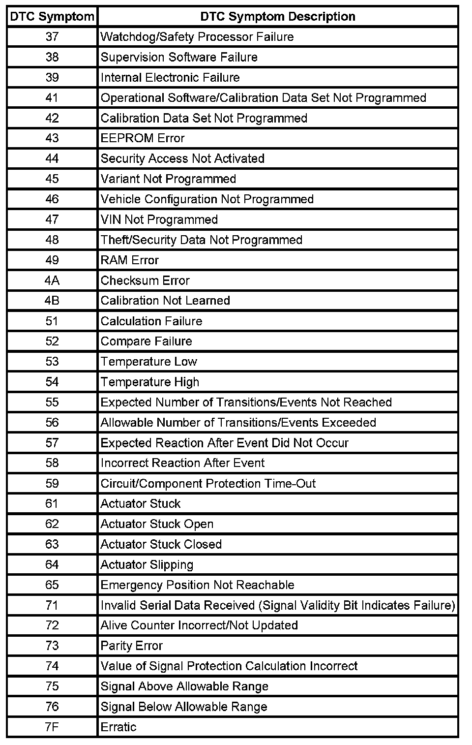 DTCs 37 - 7F: