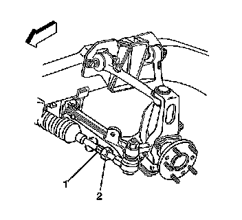 2. Rotate the inner tie rod (2) to the required toe specification setting. Refer to Wheel Alignment Specifications.