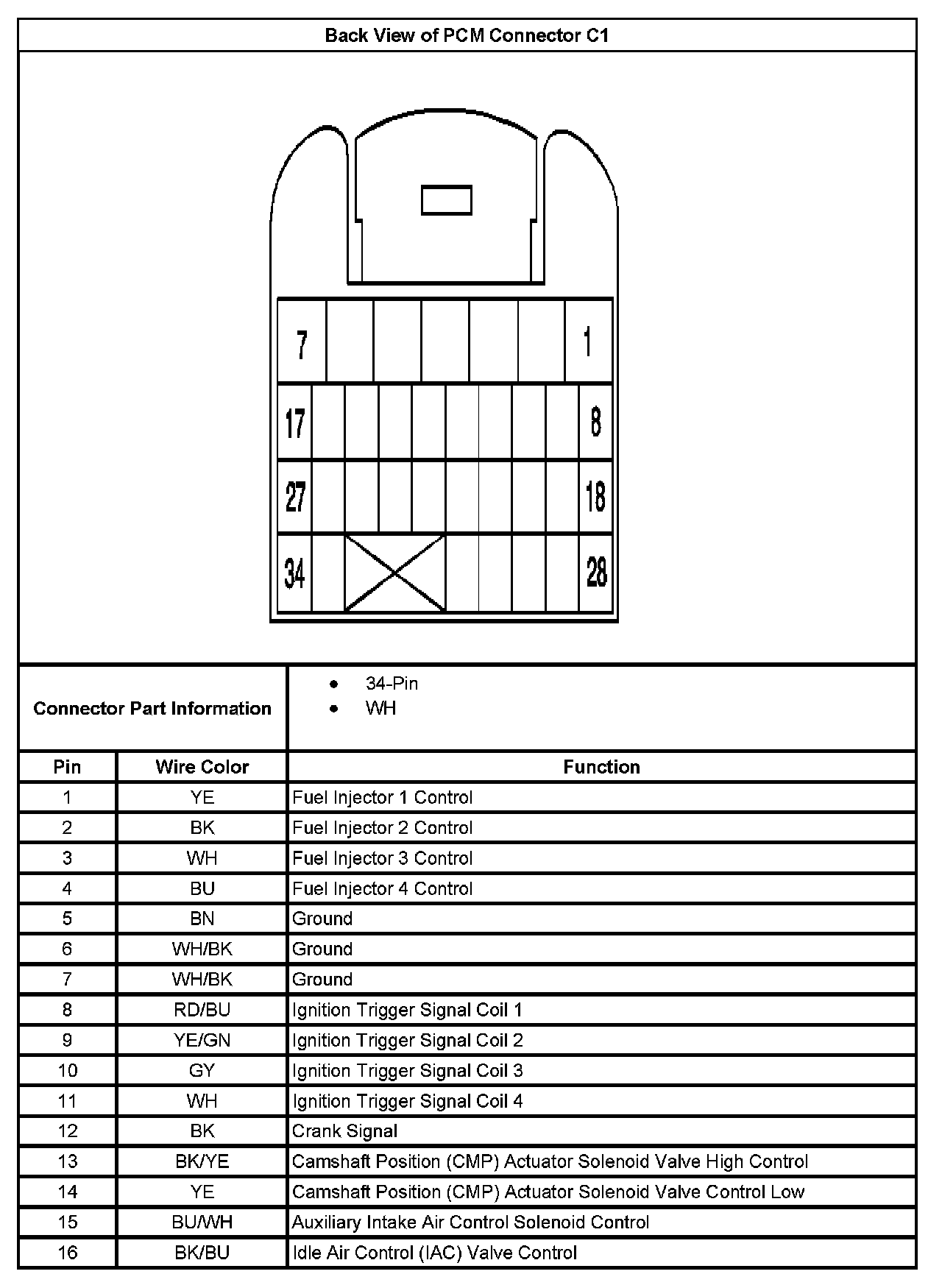 Back View Of PCM Connector C1 (Part 2):