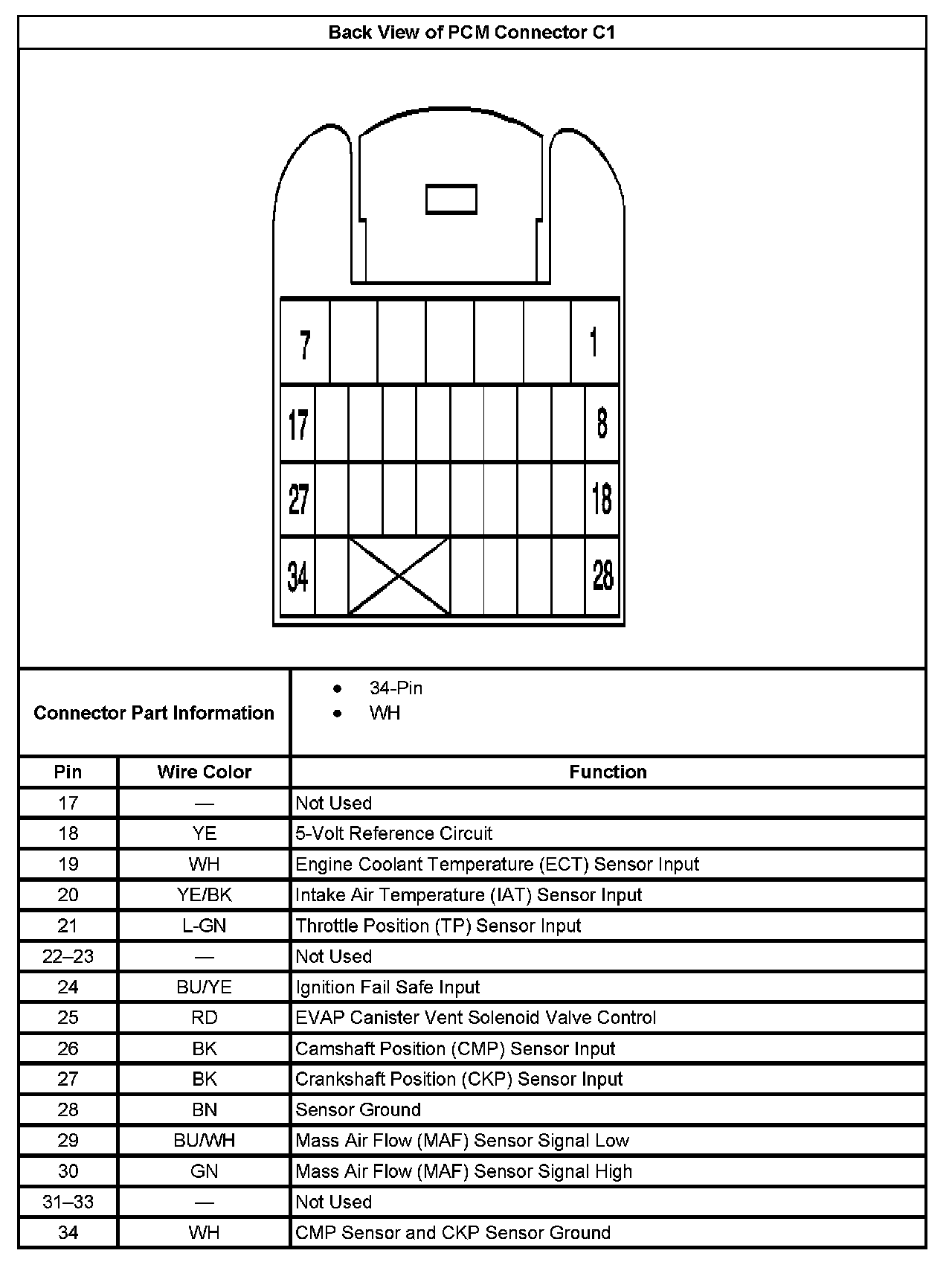 Back View of PCM Connector C1