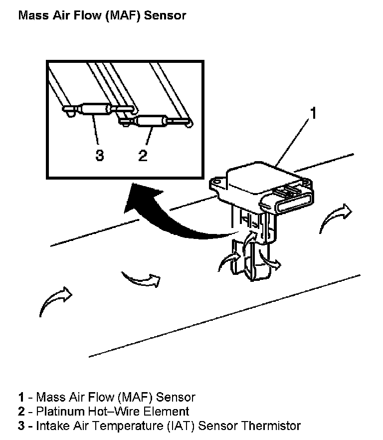 The MAF sensor also contains the intake air temperature (IAT) sensor. The IAT sensor cannot be serviced separately from the MAF sensor.