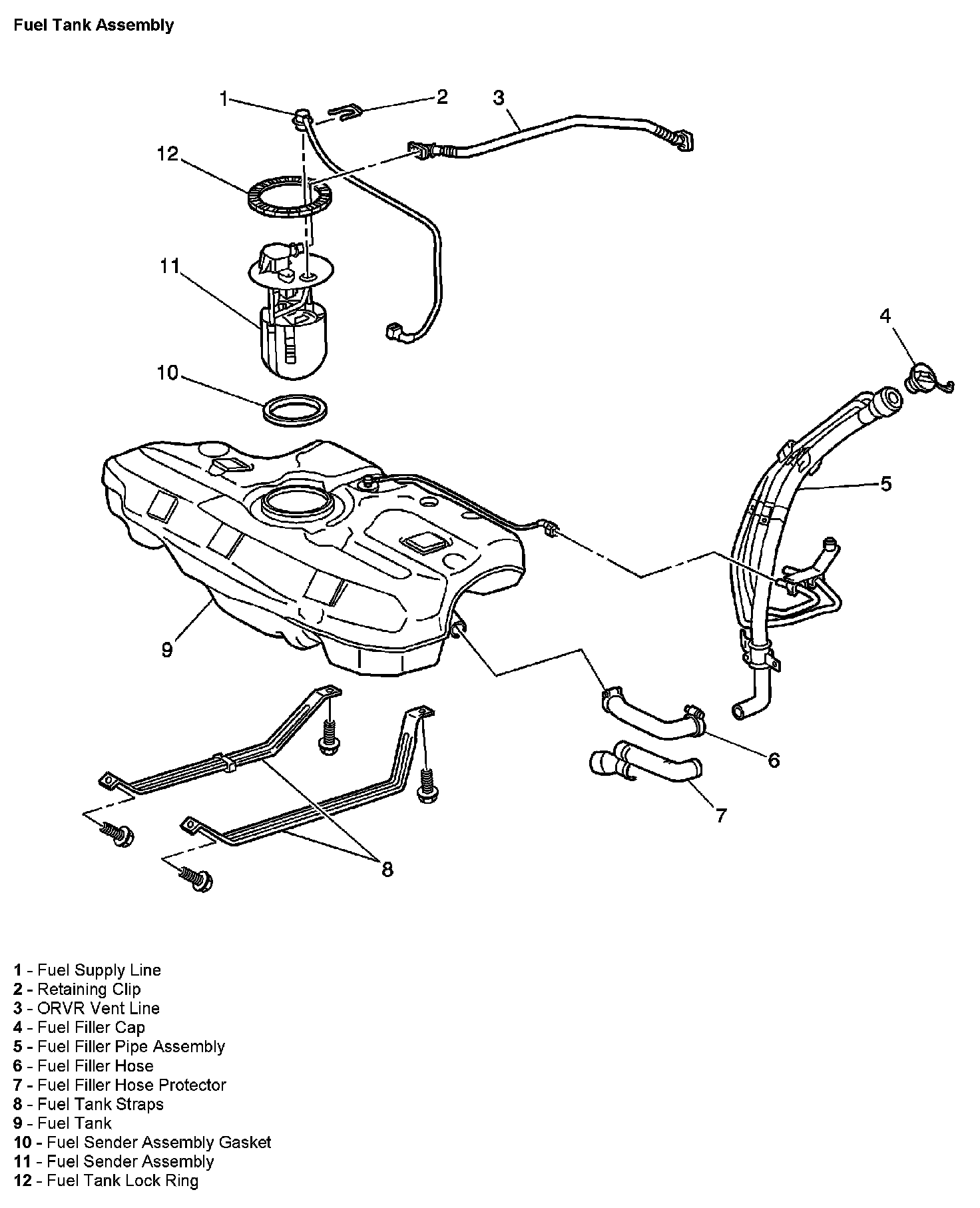 - The fuel sender assembly (7). The fuel sender assembly pumps fuel to the engine from the fuel tank.