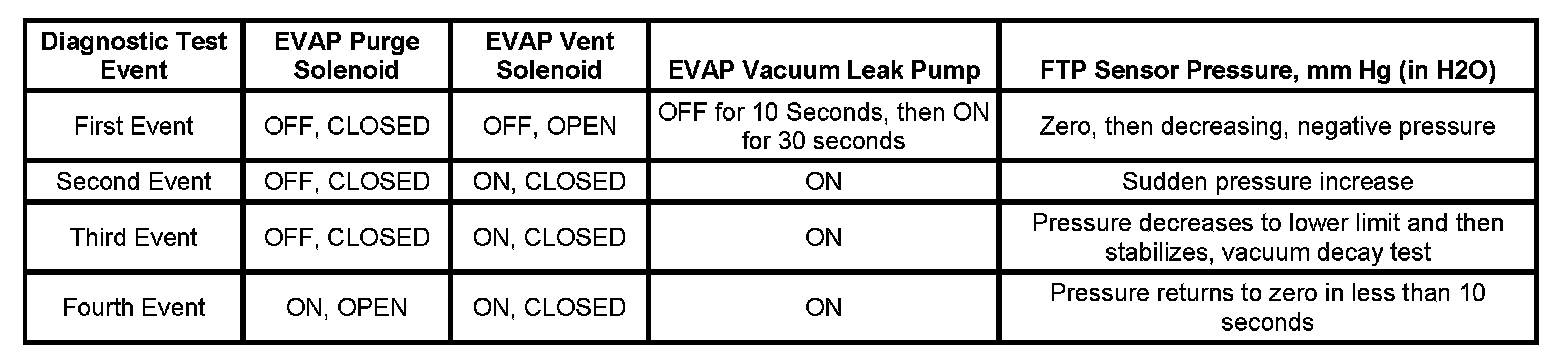 The EVAP service bay test is an automated sequence of four individual EVAP test events. The table provides an overview of each event.