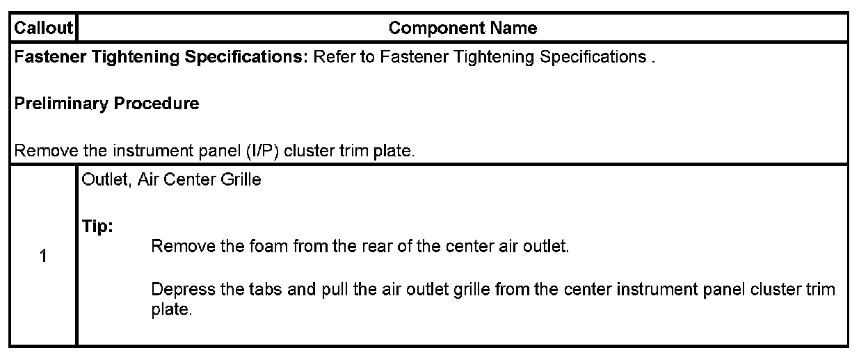 Instrument Panel Center Air Outlet Deflector Replacement