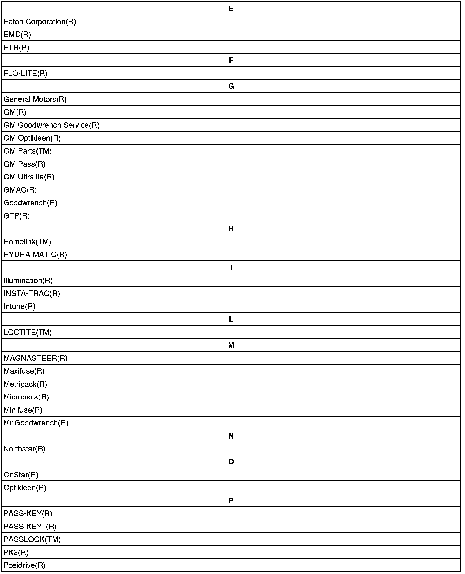 Listed below are Registered Trademarks ((R)) or Non-Registered Trademarks ((TM)) which may appear in this service manual.