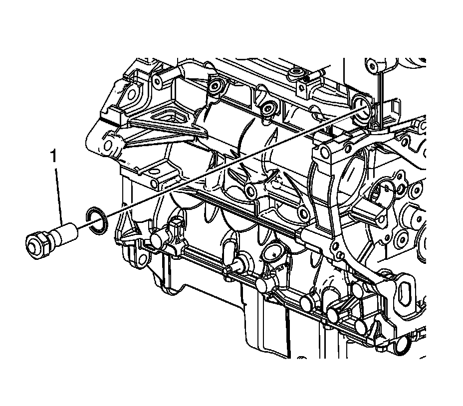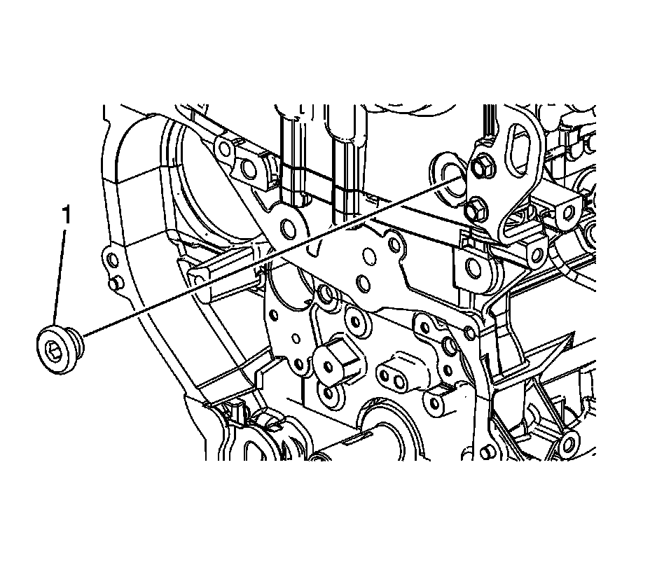 30. Install the timing chain guide bolt access hole plug (1) and tighten to 90 Nm (66 lb ft).