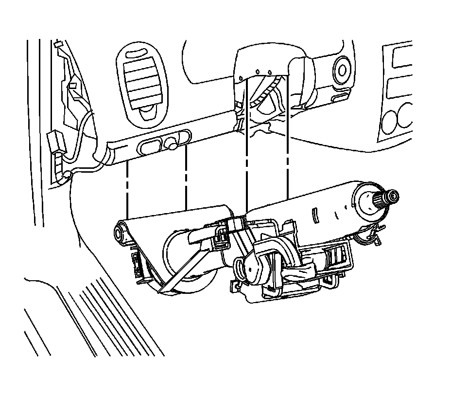 1. Remove the knee bolster bracket. Refer to Knee Bolster Bracket Replacement Knee Bolster Bracket Replacement.