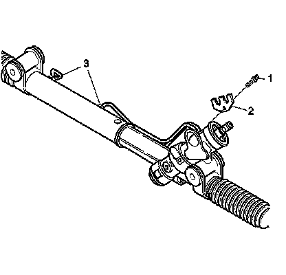6. Place the longer steering gear cylinder pipe (2) into the steering gear at the valve end of the steering gear (3).