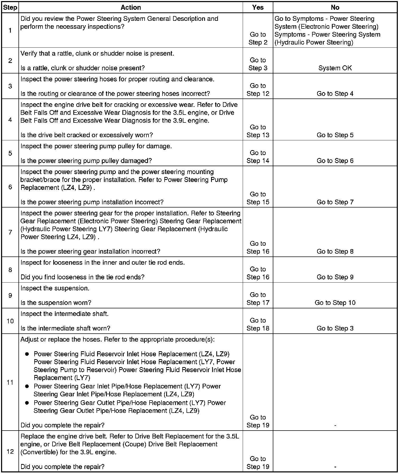 Rattle, Clunk, or Shudder Noise from the Power Steering System (Hydraulic Power Steering)