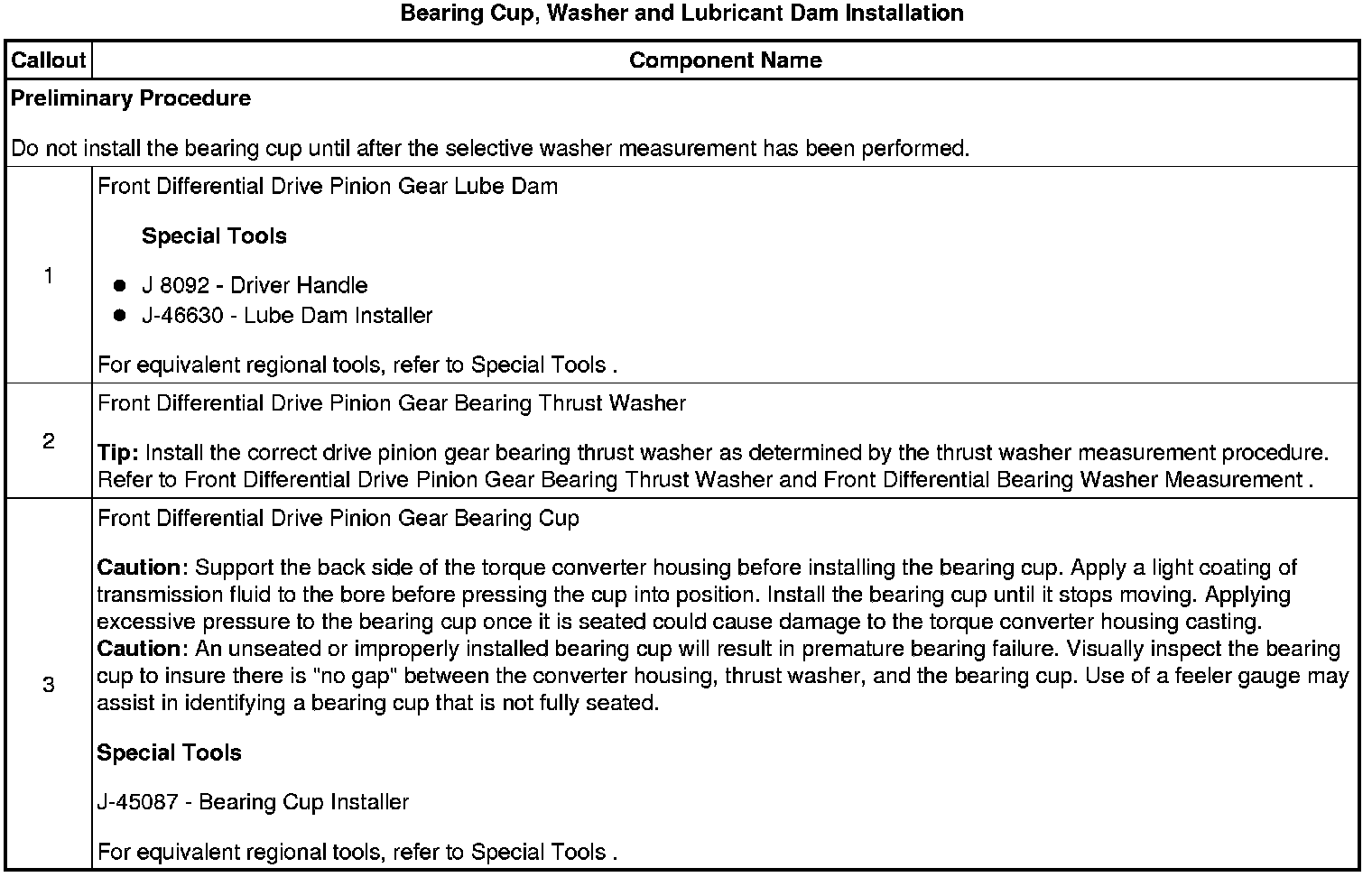 21. Front Differential Drive Pinion Bearing Cup, Washer, and Lubricant Dam Replacement - Torque Converter Housing Side