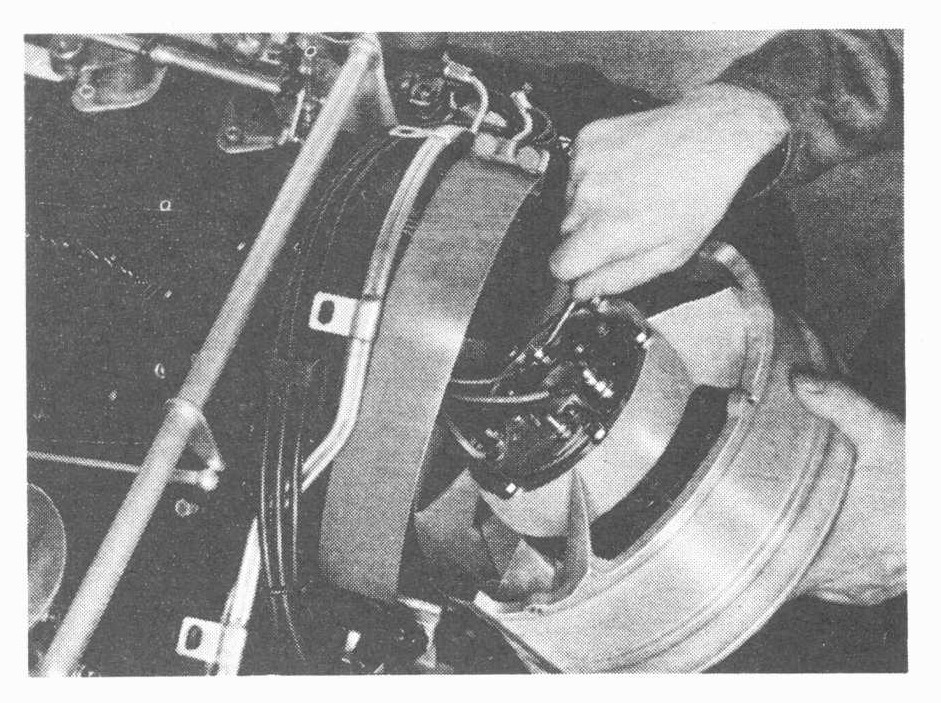 3. Remove alternator pulley retaining nut (hold with special tool P 208) and take off the V-belt.