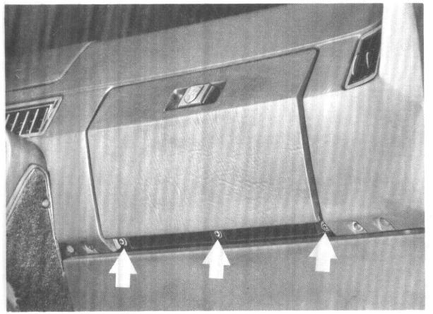 6. Remove knee guard (air conditioner) or shelf. Remove glove box and disconnect light.