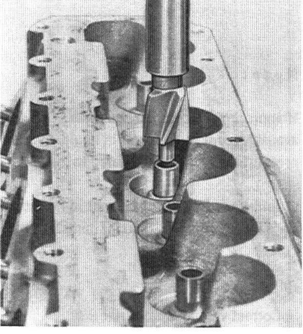 2. Grind off enough of valve guides protruding from the camshaft end with a spot facer that guides are flush with the cylinder head.