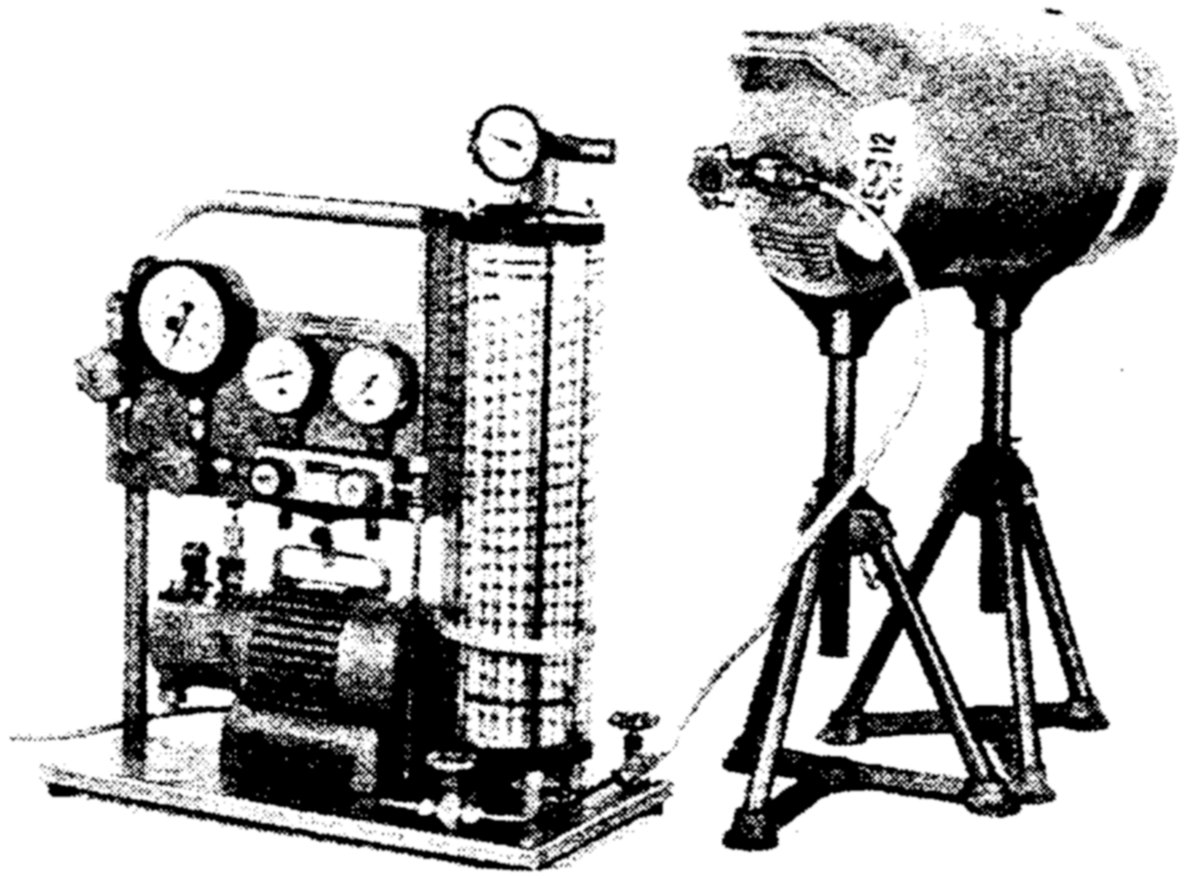 3. If the cylinder is full, close the flask valve and valve 1. The unit is now ready for operation.