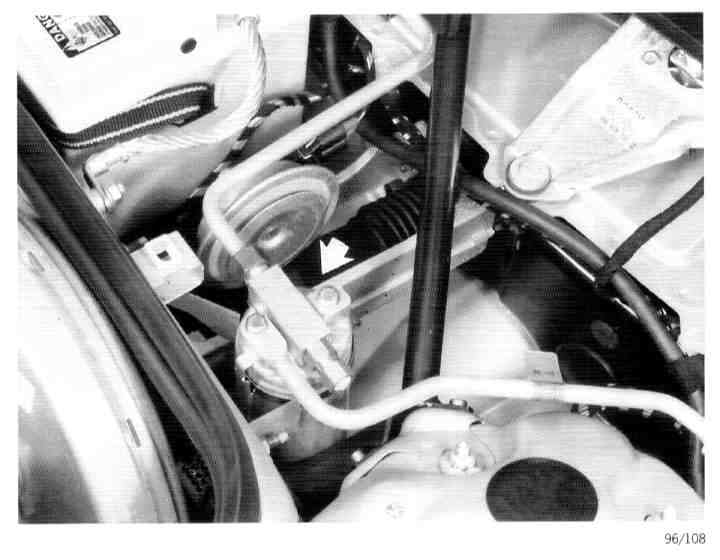 The receiver/dryer is installed in the fresh-air compartment on the lefthand side next to the battery.