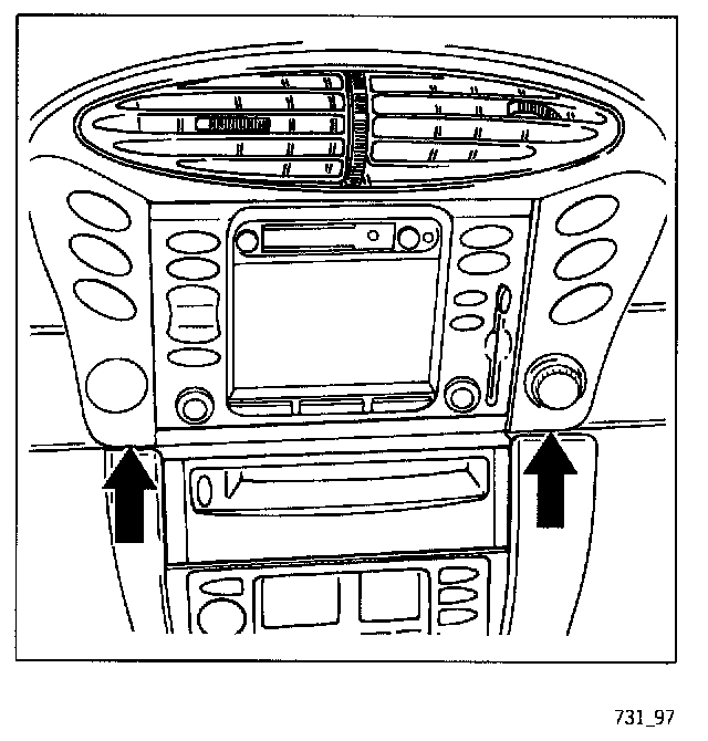 2. Detach and remove the central vent (4 Torx screws 5.0 x 22) at the centre vent. Carefully pull out the display and operator control unit and disconnect the electrical plug connections.