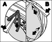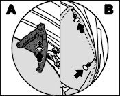 8.2. Drill out the four rivets connecting the roof liner clamping strip to the roof frame -inset B- using a Dia. 4 mm drill bit.
