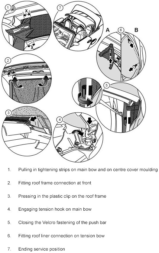 8.4. Fit convertible-top covering on the roof frame, Refer to Replacing convertible-top covering