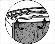 6.1. Position the roof liner connection and cloth covering on the tension bow. Secure the connection by pressing in the plastic clips into the tension bow on the left and right.