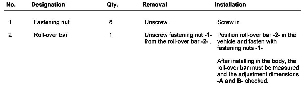 The roll-over bar is measured in production in the vehicle and fixed with dowel pins -6- and dowel sleeves -4- on the left and right sides.