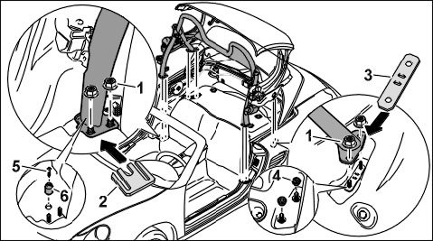 - To make taking measurements easier during installation of the roll-over bar, the number of shim plates -2, 3- should be kept the same.